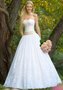 Нежное свадебное платье классического А-силуэта. Жесткий лиф, тугой, слегка заниженный корсет, линия талии и бедер украшена контрастным атласным поясом. Пышная многослойная юбка струится вниз мелкими складочками, в нижней части ее украшает изысканное кружево ручной работы. Этот наряд идеально подойдет для создания стильного и романтичного образа.