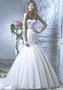 Это платье отлично подчеркнет Вашу фигуру и индивидуальность. Удлинённый корсет модели соблазнительно облегает фигуру и эффектно подчёркивает все её женственные изгибы. По всей длине корсет украшен очаровательными кружевными узорами. На фоне этого кружевного великолепия гладкий пояс выглядит строго и элегантно. Юбка – пышная, с небольшим шлейфом.