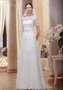 Платье А-силуэта из благородного атласа, покрытого кружевным полотном. Платье-трансформер. Атласный строгий корсет с фигурным лифом плотно обтягивает фигуру. Тонкое кружево на сетчатой основе полностью покрывает модель, начиная от элегантного округлого выреза и заканчивая кончиком шлейфа. Великолепная цветочная композиция выделяет линию талии.