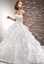 Шикарное платье с очень эффектной юбкой и расшитым корсетом. Кружевные цветочные узоры полностью покрывают корсет и эффектно подчёркивают изящество линий женской фигуры. Пышная юбка украшена отдельными кружевными элементами и роскошными объёмными подборами. В настолько изысканном наряде невеста обязательно почувствует себя настоящей Королевой бала.