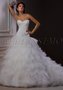 Восхитительный свадебный наряд позволит Вам почувствовать себя принцессой – лебедем. Пышная юбка с оригинальными воланами из полупрозрачной ткани словно покрыта лёгким оперением. Миниатюрный корсет с оголённой зоной декольте идеально садится по фигуре. На бедре расположилась сверкающая вышивка ручной работы.
