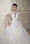 Эффектное и благородное свадебное платье с воздушной фатиновой юбкой и элегантным болеро представлено в новой коллекция 2015 года! Миниатюрный корсет с оголённой зоной декольте дополнен кружевным верхним слоем с длинными руками. Талия подчёркнута изящным пояском. Пышная юбка поражает своей невесомостью.
