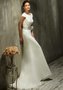 Элегантное атласное платье, закрытое декольте и V-образный вырез по спинке, цветной пояс подчеркивает линию талии, вся композиция создает шикарный, благородный образ.