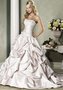 Королевское свадебное платье с открытой зоной декольте и невероятно женственным силуэтом. Изящный корсет с оригинально декорированным верхом привлекает внимание к линии декольте и выгодно подчёркивает талию. Пышная юбка украшена объёмными оборками и воланами. Завершает образ изящный длинный шлейф.
