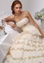 Романтичное свадебное платье, выполненное из нежного кружева и благородной тафты. Открытая зона декольте и широкая лента под грудью привлекает внимание к бюсту. Модель эффектно подчёркивает достоинства фигуры. Длинная юбка состоит из многоуровневых игривых воланов. Наряд не перегружен деталями, но смотрится сногсшибательно.