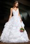 Смелое свадебное платье с открытой зоной декольте и глубоким вырезом. Корсет отлично подчеркивает грудь и зрительно уменьшает талию. Модель декорирована цветочным узором, вышитым стеклярусом. Воздушная юбка украшена оборками ткани и аппликацией из стекляруса. В этом платье вы будете самой прекрасной невестой.