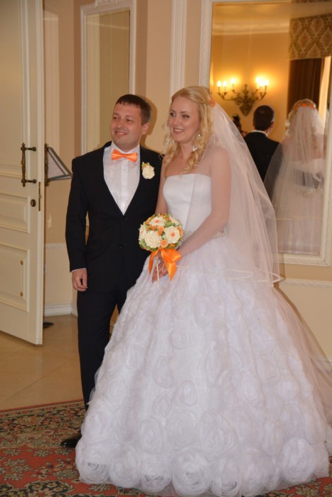 Добрый День) Моя свадьба была 13 марта) покупала платье в салоне на Тульской, прекрасное обслуживание, отличный ассортимент, огромный выбор и приятные цены, даже такой капризной девчонке как я, подобрали шикарное платье!! Все гости и, естественно, муж были в полном восторге!!! А поблагодарить хочется следующих людей: Людмилу,которая помогла подобрать платье моей мечты ,Татьяну, которая подгоняла платье по моей фигуре, сделала все идеально, все примерки были вовремя, никаких задержек)), отдельное спасибо за прическу – мастеру Юле, за свадебный макияж – Алле, все сделали вовремя, закончили точно по времени, и даже после посидели за чашечкой чая и отдохнули)) Просто нужно очень внимательно и аккуратно рассчитать время) Я чувствовала себя настоящей королевой!!! Как жаль, что этот день прошел так быстро(