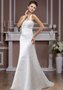 Шикарный свадебный наряд поможет Вам в создании чувственного образа. Тугой лиф с двумя симметричными бретелями в верхней части украшен тончайшим кружевом, линия груди подчеркнута россыпью жемчуга. Идеальная силуэтная линия – главная отличительная черта этого платья, небольшой полукруглый шлейф придаст наряду недостающий шарм.