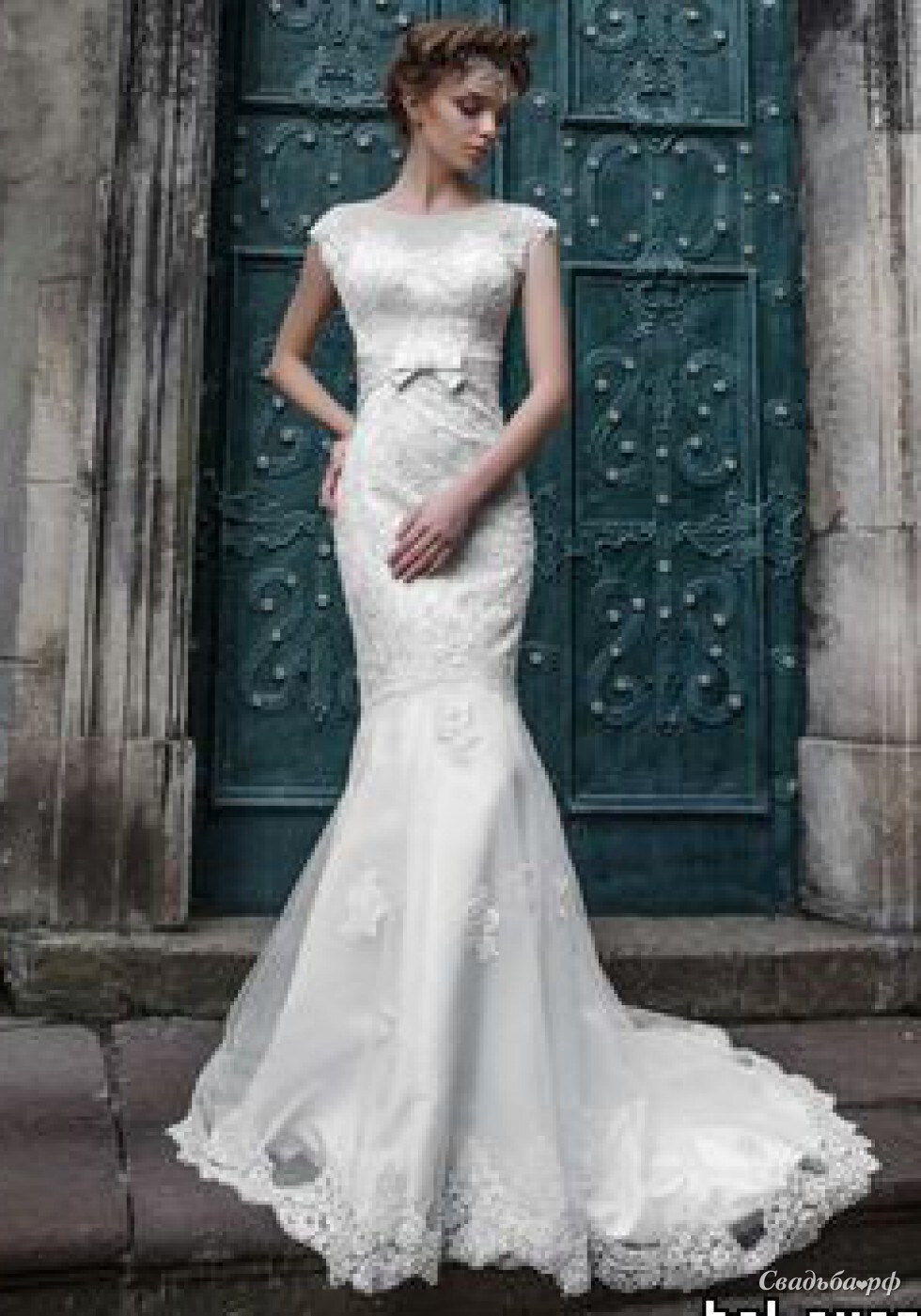 Очаровательное свадебное платье вручную расшито сверкающими пайетками, бисером и кристаллами Сваровски. Такой наряд с закрытым верхом и небольшими рукавчиками идеально садится по фигуре и мягко подчёркивает все её достоинства. Широкий пояс дополнен кокетливым бантиком. От уровня колен юбка начинает расширяться. Платье окантовано кружевом.