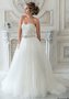 Пышное свадебное платье, корсет которого полностью расшит стеклярусом. Фигурная линия декольте подчеркивает красивую линию декольте. Линия талии подчеркнута расшивкой стеклярусом в виде пояса. Воздушная юбка из фатина со множеством легких складок довершает образ.