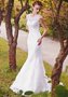 Изысканное свадебное платье с закрытым верхом подчеркивает утонченность и грациозность фигуры. Главным украшением модели является верхний слой из кружевного полотна и прямая юбка, облегающая фигуру. Открытая спинка придает наряду неповторимый романтичный образ.