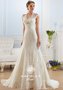 Свадебное платье из тонкого кружева олицетворяет собой актуальные веяния свадебной моды 2015 года. Скромный вырез на груди и вырез-капелька на спинке обрамлены полупрозрачной тканью. Широкие бретели и закрытые плечики придают образу особый шик. Под грудью расположена ленточка со сверкающим украшением. Длинная юбка со шлейфом расширяется к полу.