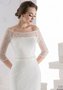 Нежное, утонченное и очень романтичное свадебное платье подчеркнет все достоинства фигуры. Оригинальное тонкое кружево украшает модель, закрывая зону декольте и руки до локтя, делая образ волнующим и привлекательным. Вырез в форме лодочки и манжеты расшиты изумительной нежной расшивкой из стекляруса. На талии атласный пояс, украшенный стеклярусом и жемчужинками. Весь наряд невероятно красивый и трогательный.