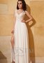 Свадебное платье из шифона и кружева великолепно подчеркивает прелестный женственный силуэт своей обладательницы. Кружевной корсет телесного цвета с бретелями и V-образным вырезом эффектно облегает фигуру. Игривость наряду придает пикантный разрез на юбке. Платье струится до самого пола и зрительно вытягивает силуэт.