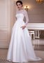Пышная юбка со складками и закрытый корсет с длинными рукавами превосходно дополняют образ истинной королевы. Кружево на корсете завораживает с первого взгляда. Модель идеально подойдет для любой невесты. Наряд превосходно скрывает недостатки фигуры и подчеркнет все достоинства.