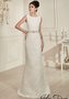 Кружевное свадебное платье идеально садится по фигуре. Закрытая зона декольте с широкими бретелями и вырезом – лодочкой придаёт образу изысканность. Украшением данной модели является атласная лента на поясе, вручную расшитая сверкающими стразами Сваровски. Изюминка представленного платья - открытая спинка.