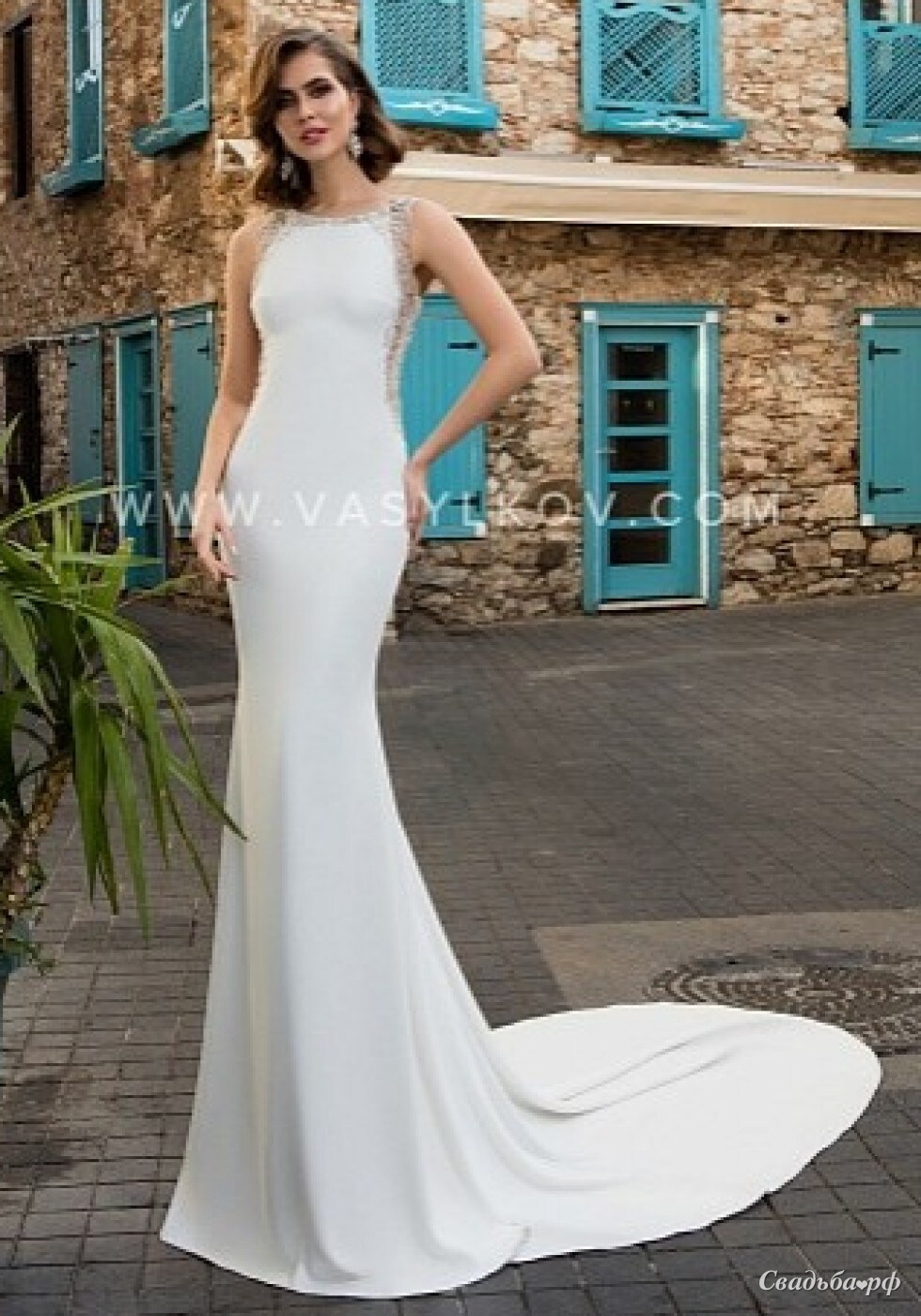 Изумительное свадебное платье по фигуре для самых романтичных невест. Модель выгодно подчёркивает талию и привлекает внимание к спине.