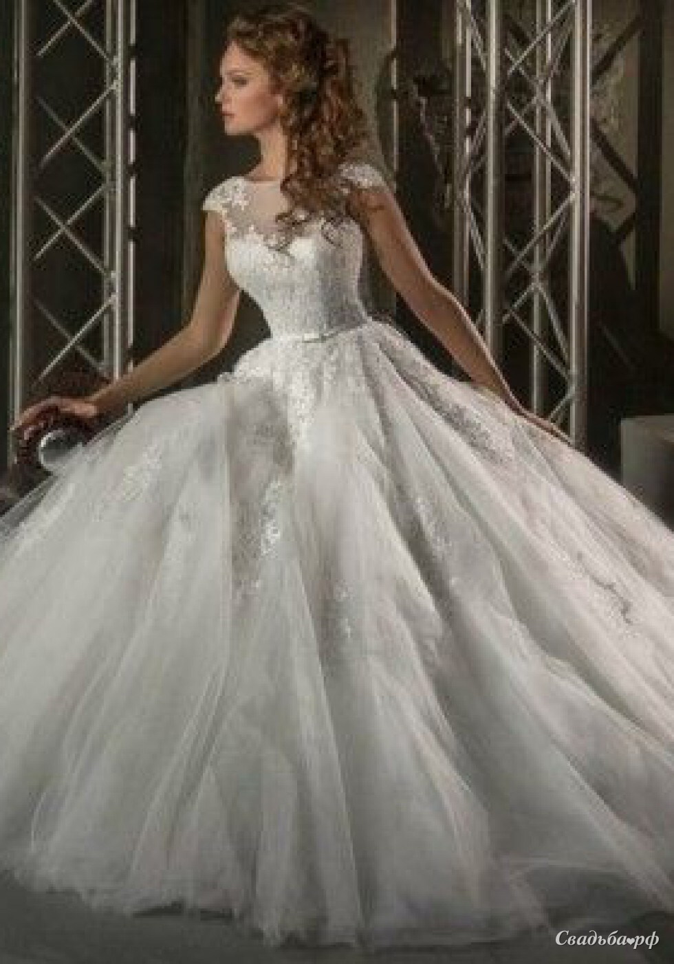 Нежное закрытое свадебное платье в пышном стиле