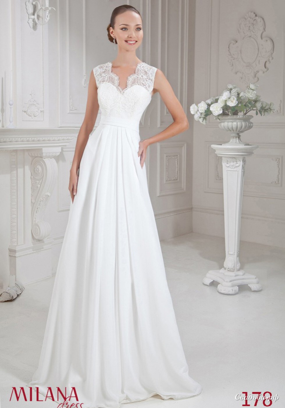 Невероятно воздушное и нежное закрытое свадебное платье с кружевным корсетом отличается простотой и лаконичностью. Такой наряд придется по душе романтичным девушкам