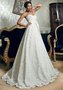 Нежное свадебное платье А-силуэта с кружевным корсетом и открытыми плечиками
