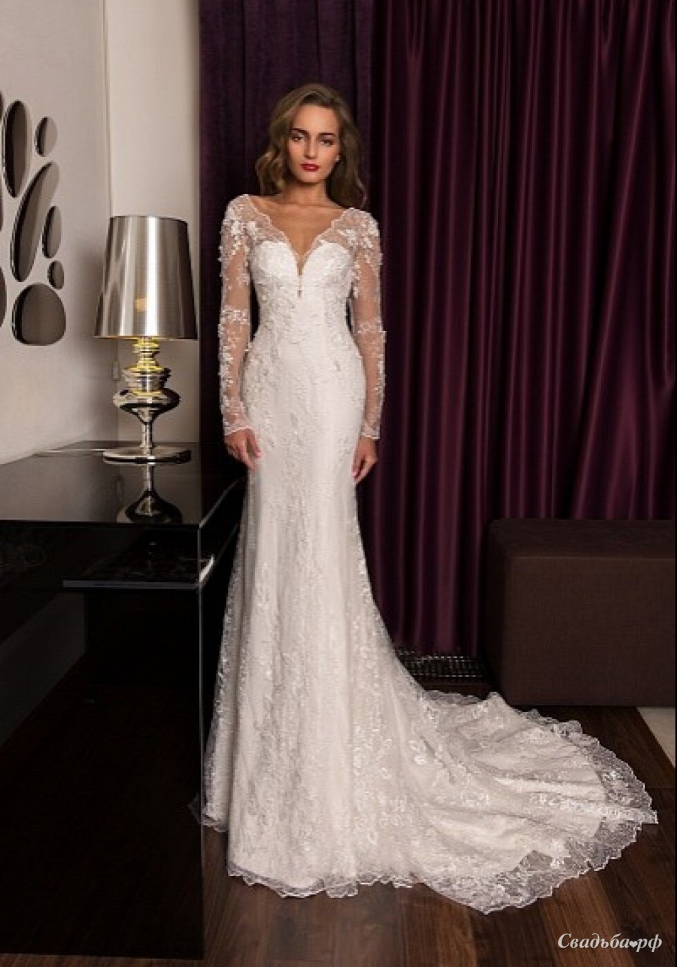 Эффектное свадебное платье по фигуре с элементами расшивки и 3D аппликациями
