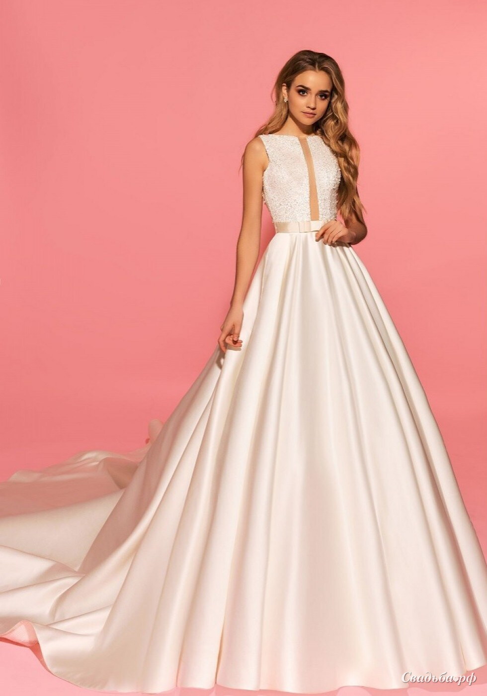Элегантное свадебное платье с открытой спинкой и невероятным, расшитым пайеткой, корсетом
