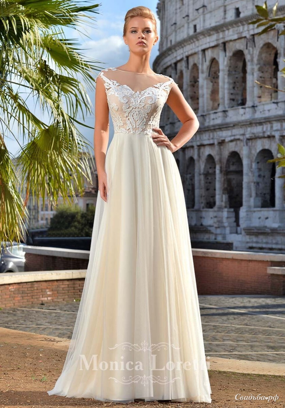Свадебное платье цвета айвори с оригинальным кружевом на спинке