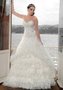 Роскошное свадебное платье от лучших отечественных дизайнеров никого не оставит равнодушным. Искусно расшитый корсет с открытой зоной декольте зрительно увеличивает бюст и выгодно подчёркивает талию. Пышная юбочка с многоярусными воланами и сборками драпировки придаёт образу лёгкость и неповторимость.