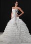 Потрясающее свадебное платье Антония придётся по душе роковым красавицам. Заниженный корсет с соблазнительно открытой зоной декольте украшен лёгкой драпировкой и ослепительной вышивкой, переходящей и на юбку. Многоярусные воланы из лёгкой ткани придают юбке неповторимость и воздушность. Красивый шлейф дополняет сказочный образ.