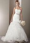 Невероятно нежное и изысканное свадебное платье силуэта «Русалочка». Удлинённый корсет с открытым лифом украшен изысканной диагональной драпировкой. Линия талии эффектно выделена декоративным поясом, расшитым бисером и сверкающими стразами. Невесомые оборки юбки собраны в роскошные объёмные розы. Сзади – элегантный шлейф.