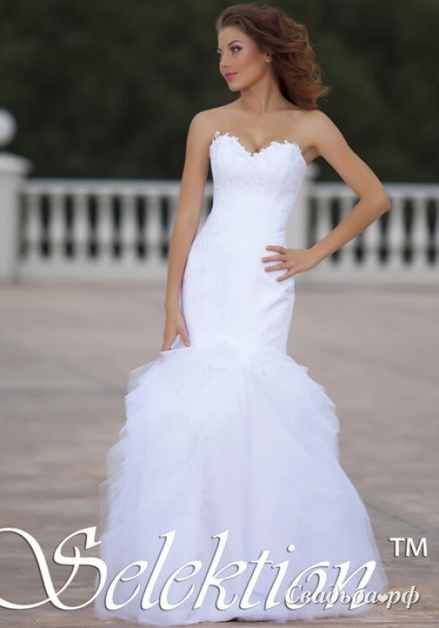 Очаровательное свадебное платье со съемными бретелями поможет создать сногсшибательный образ современной невесты. Заниженный корсет с открытой зоной декольте выполнен из европейского кружева. От середины бедра начинается пышная фатиновая юбка. Спинка на удобной шнуровке. Такое свадебное платье подчеркнет вашу безупречную фигуру.