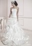 Свадебное платье с заниженным корсетом и необыкновенной пышной юбкой со шлейфом. Корсет платья украшен вышивкой, элементами Swarovski, японским бисером. Юбка выполнена из органзы в виде воланов. Сзади на шлейфе декоративный бант. Головное украшение входит в комплект к платью.