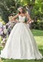 Очень сексуальное и откровенное свадебное платье А-силуэта с глубоким V-образным декольте. Декоративный поясок привлекает внимание к талии и выполнен из страз Swarovski. Юбка очень пышная, отличается множеством слоев ткани, а самый верхний слой - великолепное декоративное кружево. Платье предлагается в кремовом цвете.