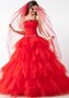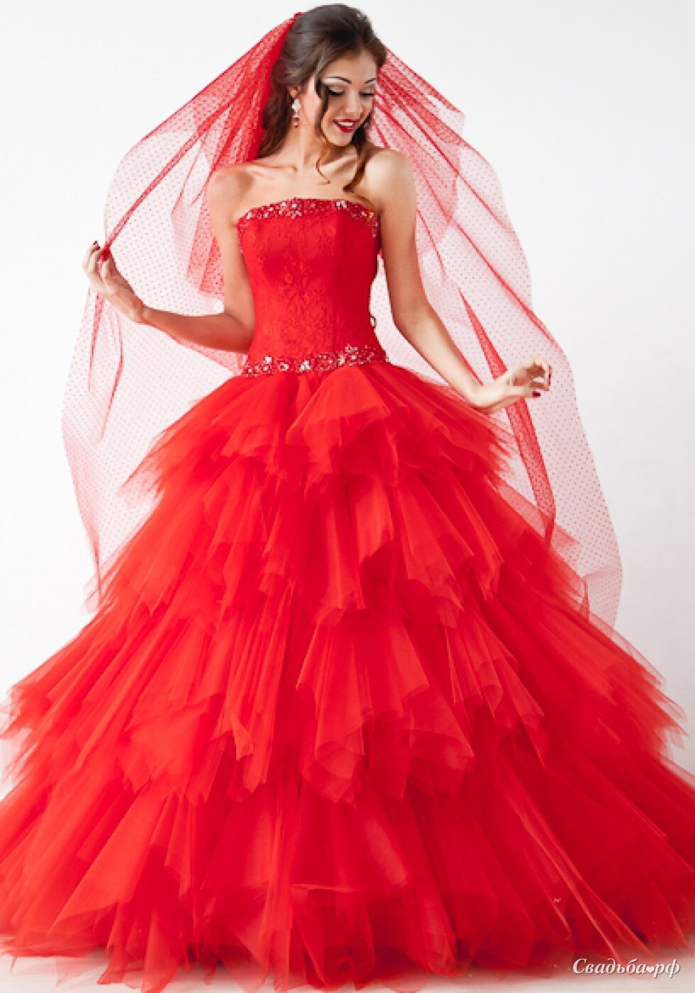 Шикарное свадебное платье от итальянского бренда Selektion красного цвета. Плотный корсет по контуру вверху и внизу украшен вышивкой из страз, пайеток и бисера. Линия декольте прямая. Пышная юбка состоит из множества рваных фатиновых лепестков. Это добавляет игривость, неповторимость невесты. Платье для смелых и уверенных в себе девушек.