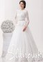 Дизайнерское платье 2015 года от Slanovskiy 15007 с закрытыми рукавами и "баской". Элегантное и в тоже время загадочное свадебное платье. Верх наряда и подол декорированы текстурным кружевом, ювелирный поясок выделяет талию. Спинка на молнии, прикрыта пуговицами.