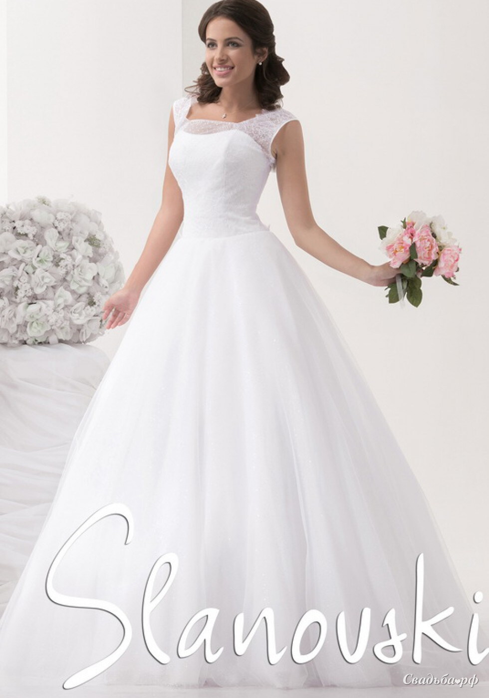 Свадебное платье из коллекции Romantico 2015 года создано для истинной леди. Нежный силуэт с широкими кружевными бретелями и со съемной баской не оставит Вас без внимания. Пышная юбка придаёт наряду лёгкость. Это платье А-силуэта не перегружено лишним декором, благодаря чему смотрится изысканно. Корсет дополнен шнуровкой на спинке.