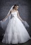 Корсет этого изысканного платья выполнен из кружева, элегантная лента с небольшим бантом подчеркивает стройность фигуры. Пышная фатиновая юбка, украшена нежным кружевом. На спине шнуровка.