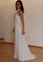 Представленный наряд выполнен в силуэте годе. Всё платье покрывается нежнейшим шифоном. Свадебное платье декорируется вышивкой по стойке и изумительной брошью, из-под которой вытекает мягкая волна материала. Небольшой шлейф украшает юбку платья. Оригинальный, непревзойдённый, особенный образ создаётся, когда невеста облачается в данное свадебное платье. Не стоит сомневаться, невеста затмит всех на самом важном празднике жизни.