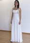 Изящное лёгкое свадебное платье, выполненное в греческом стиле, представляется в кремовом цвете. Используемая ткань: шифон, – который, несомненно, создаёт необходимый эффект изысканности и элегантности. Изумительный лиф драпируется складками. Также он украшается широкими кружевными бретелями, который привносят свою изюминку в созданный образ. Застёгивается платье посредством молнии, что достаточно удобно. Мягкие складки ткани спускаются в пол и делают силуэт воздушным, очаровательным и необыкновенно красивым.
