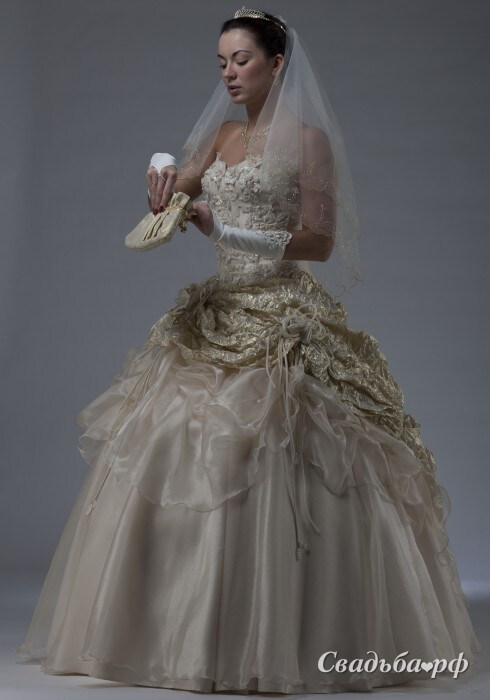 Изумительное свадебное платье, изготовленное из дорогого материала кремового оттенка, сделает невесту ещё изящней и прекрасней. Комплект представленного свадебного наряда состоит из юбки и корсета. Также комплект может быть пополнен перчатками. Корсет расшит вручную стразами Сваровски, пайетками и бисером. Юбка декорирована шикарными цветами. Образ, созданный данным свадебным нарядом, будет по-настоящему роскошным.