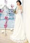 Элегантное кружевное свадебное платье с рукавами, декольтировано по спинке V-образным вырезом, со шлейфом.