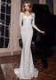 Облегающее кружевное платье с длинными рукавами и небольшим шлейфом.