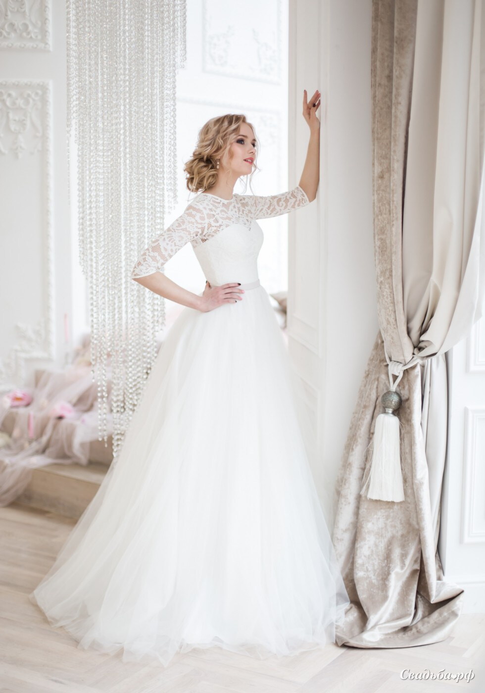 Идеальное платье для венчания - длинные кружевные рукава и юбка А-силуэта из мягкого еврофатина