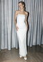 Элегантное платье бандо прямого силуэта из фактурного кружева. Сзади на юбке высокий разрез