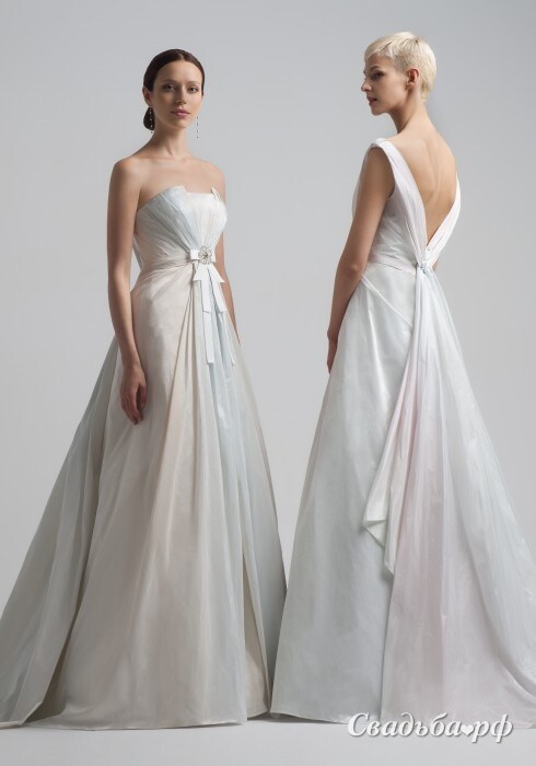 Идея: сложный цвет платья можно обыграть в костюме жениха, выполнив бабочку, нагрудный платок или декор бутоньерки из аналогичного материала.