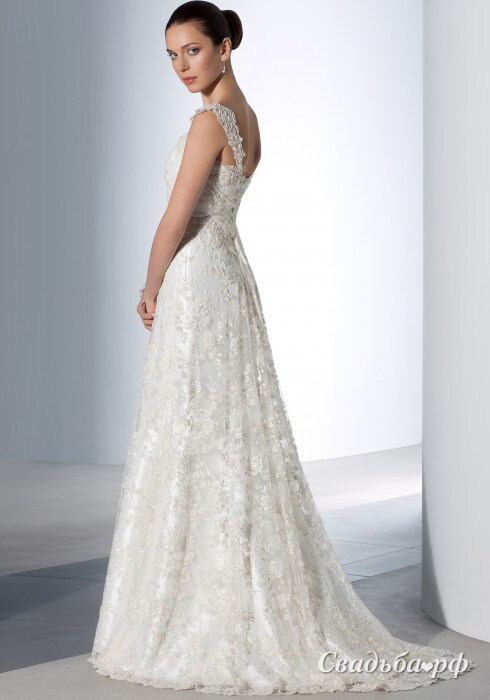 Thiara: роскошное кружевное платье, расшитое некрупным стеклярусом, с элегантной линией декольте и шикарными кружевным лямками. Длинный шлейф и утонченная текстура кружева придадут Вашему образу романтики и женственности.