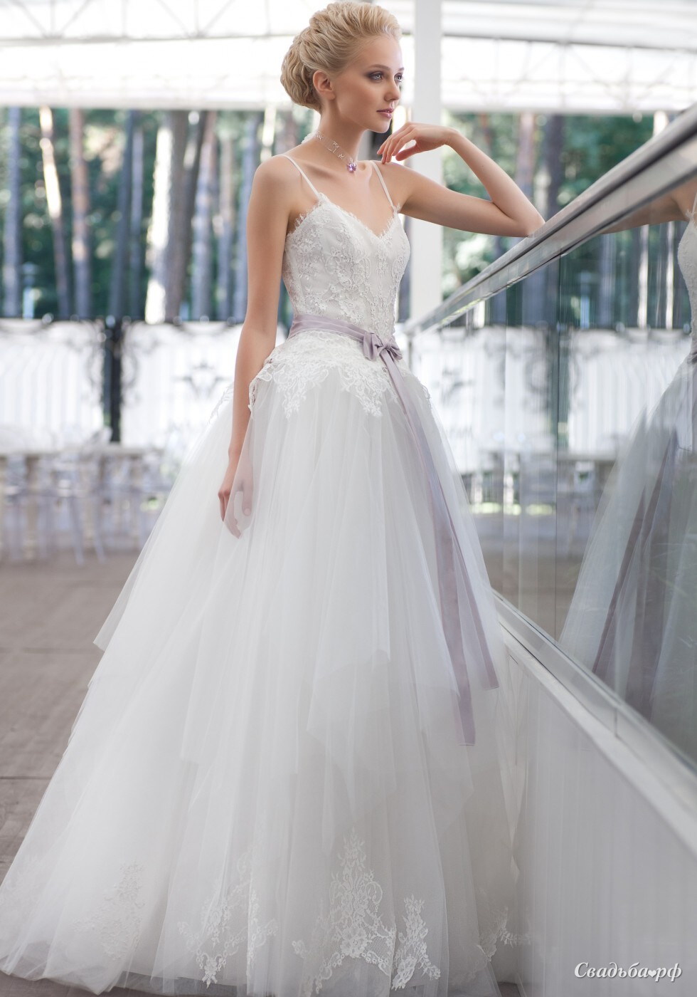 Платье изящной нимфы – нежное кружево корсета в сочетании с воздушной фатиной юбкой подчеркнут женственность обладательницы этого великолепного наряда.