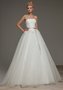 Классическое пышное платье с облегченной юбкой и кружевным корсетом. Прямая линия декольте нежно оформлена узорным краем кордового кружева. Тонкий пояс на талии. Плотный, мягкий корсет позволит не только скорректировать фигуру, но и чувствовать себя комфортно в течении свадебного дня.