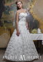 Оригинальное свадебное платье А-силуэта создано для самых креативных невест. Заниженный корсет с эффектной драпировкой и объёмными украшениями зрительно увеличивает бюст и выгодно подчёркивает талию. Пышная юбка декорирована розами. Такая необычная фактура придаёт наряду особый шарм. Открытая зона декольте привлекает к себе внимание.