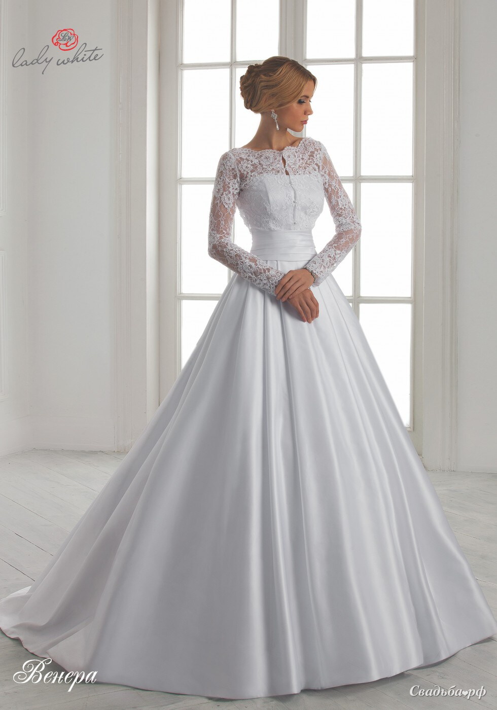 Пышное свадебное платье из дюпонта с кордовым расшитым болеро.